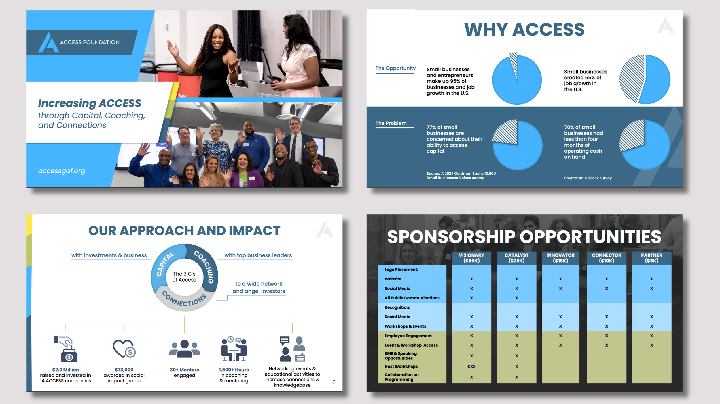 Each presentation is crafted to clarify ideas, streamline complex narratives, and deliver visual systems that support confident, persuasive storytelling across meetings, pitches, and events.